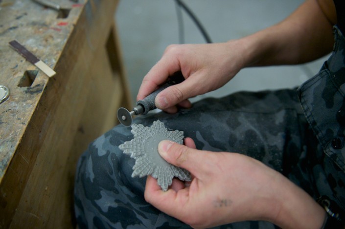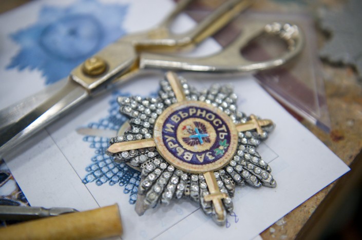 Своими секретами мастерства пользуются и бутафоры театра. Их главная задача - обеспечить артистам комфортное использование реквизита при исполнении. Например, 25 вил и грабель для крестьян они изготавливают в облегченном варианте, но в то же время следят, чтобы инструменты получились прочными. Самая кропотливая работа была проделана над орденами и медалями. Предметы хотя и мелкие, но сделали их очень реалистичными. И здесь в ход шла практически ювелирная работа, в которую входила не только резка металла для придания специальной витиеватой формы ордена, но и инкрустация его искусственными камнями. Если присмотреться, то посередине можно увидеть даже лакированный рисунок.