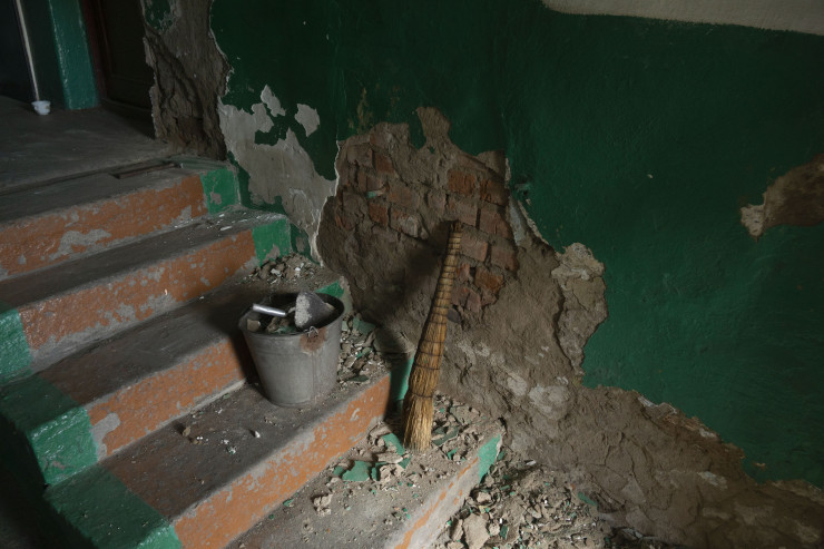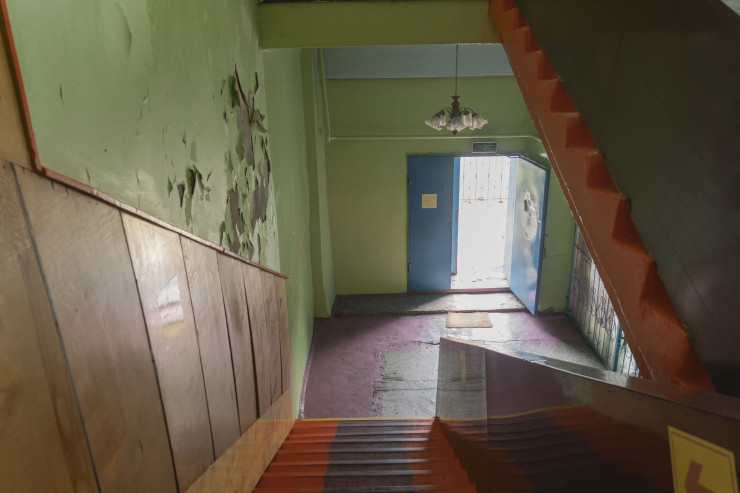 Примерно через час я обнаружил этого трудягу в другой части поселка, где он был занят очередной подработкой - ремонтировал подъезд.