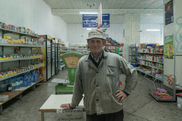 В магазине мы беседуем с местным жителем Павлом Тимофеевичем Тетериным, в следующем месяце ему будет 62 года.