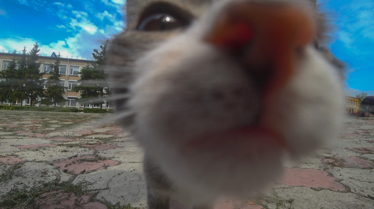 Одна из сотрудниц продолжала выковыривать траву из-под брусчатки, в этот момент к ней подбежал котенок, которого она тут же взяла на руки. Оказалось, это переселенка из Туркестанской области и в Мамлютке ее все устраивает.