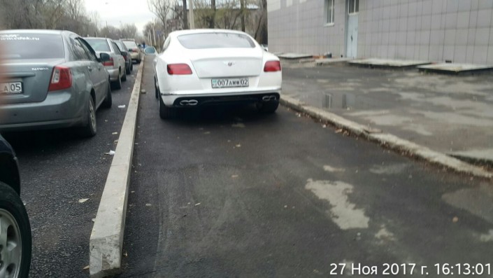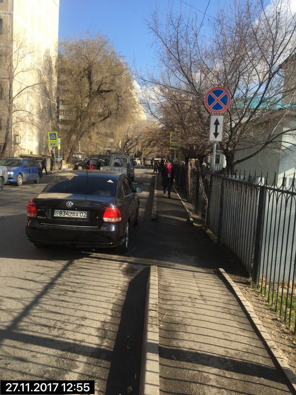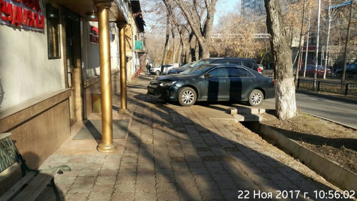 "По улице Шевченко, между улицами Байтурсынова и Масанчи, южная сторона Шевченко, возле стадиона автомобиль с госномером 393aab02 припарковался на тротуаре", - сообщил очевидец.