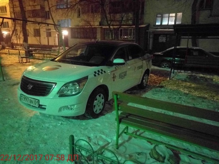 Нарушение правил парковки. Проспект Сарыарка 35/2. Авто городской службы такси на детской площадке.