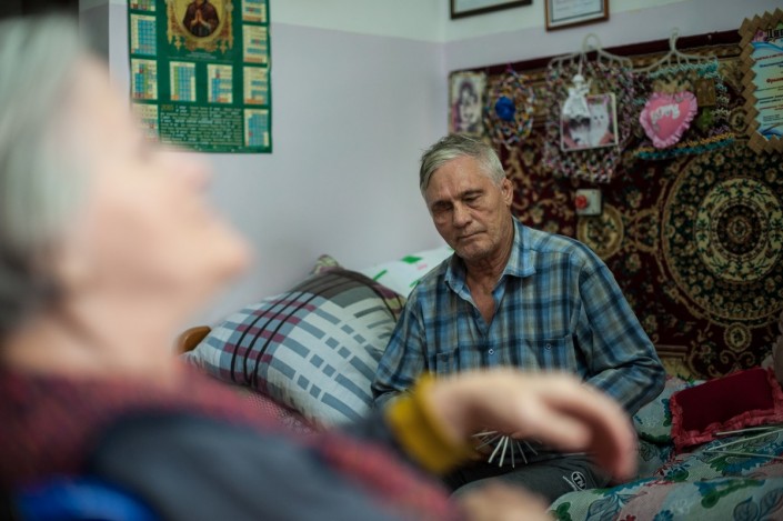 Вместе с супругой Зинаидой Ивановной Шкитиной в этом учреждении он живет уже 20 лет. Ей 70, ему - 63. "Сейчас я не стал ходить в клуб", - говорит Александр Владимирович. А его супруга, которая в прошлом году подпевала мужу, объясняет: "Там знаете, такие требования, как будто мы артисты. И так подними ногу, и этак, я говорю, скажите спасибо, что мы ходим. То один гармонист придет, то другой, требований много, а бабке, допустим, 80 лет, какие ей ноты, она поет в народном стиле. Потом их повезут в город, там они бедные поют, мучаются, это же старые люди. А им надо чем-то выхваливаться, что кто-то вяжет, кто-то что-то делает. Вот нас показывают, а если мы не сможем это делать, кого вы будете показывать?"
