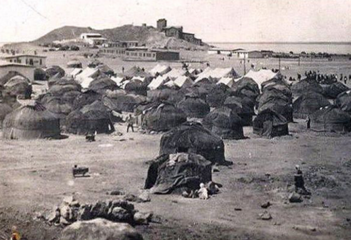 Годы голода (1931-1933). Казахские кочевники разбили юрты рядом с рудником Коунрад.
