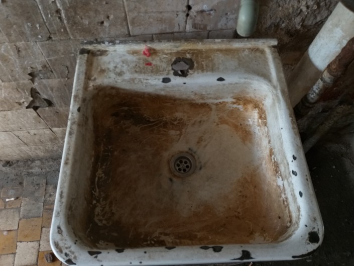 В туалетах грязно, где-то неконтролируемо бежит вода, а в женской части и вовсе повалилась стена.