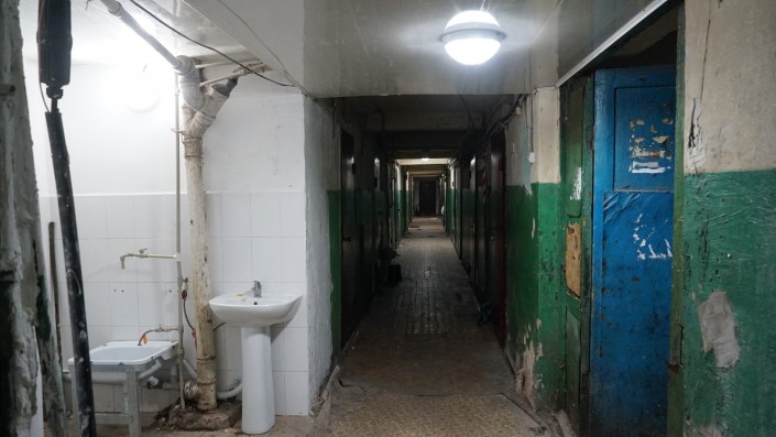 Тем временем немногочисленные владельцы комнат, которые продолжают жить в этом здании, ума не приложат, что делать с общим туалетом. "Очень плохо живется, честное слово. Я вот на третьем этаже живу, и как в туалет ходить? Я уже дважды падала. Как мне дальше жить?" - вопрошает 85-летняя пенсионерка.