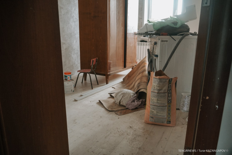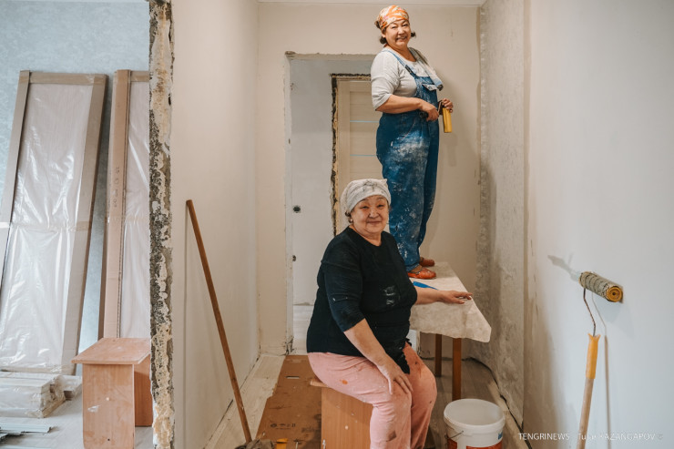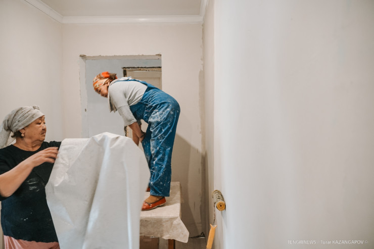 Это работницы Кымбат и Карлыгаш. На их счету уже несколько отремонтированных квартир, пострадавших от потопов.