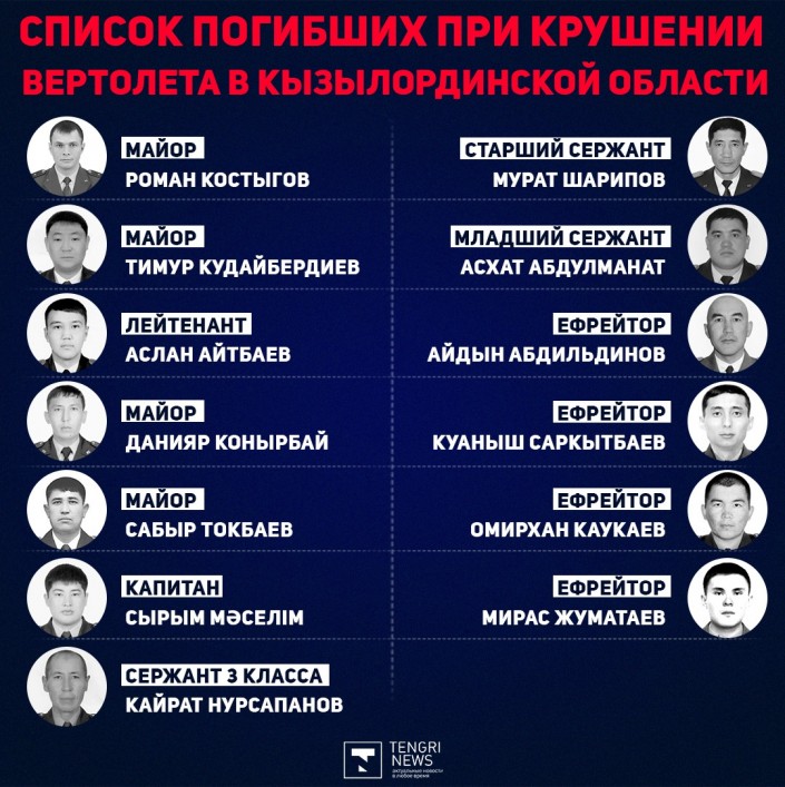Список погибших при крушении вертолета в Кызылординской области