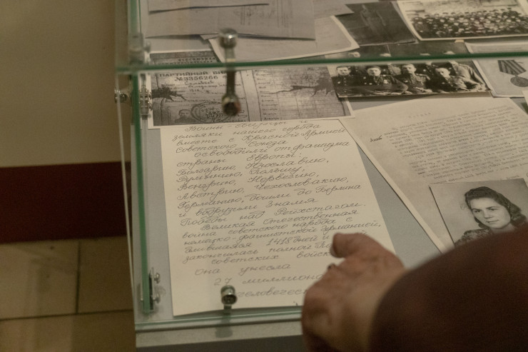 Но оказалось, что никто не спрашивал у этих гвардейцев, умеют ли они плавать. И вот начало наступления. Один из красноармейцев обращает внимание на своего товарища Серикказы, который находится в углу окопа. Он сидит и что-то бурчит себе под нос. К нему обратились: Серикказы, что случилось? Ты что-то поешь? Нет, говорит, я прощаюсь. Прощаешься с чем? С жизнью. Почему? В этот момент Серикказы рассказывает о том, что он не умеет плавать, и чтобы переплыть реку Свирь, ему нужно пожертвовать своей жизнью", - говорит экскурсовод, а на глазах ее выступают слезы. Позже она пояснит, что так впечатлилась, потому что ей удалось слушать эти истории из уст самих ветеранов.