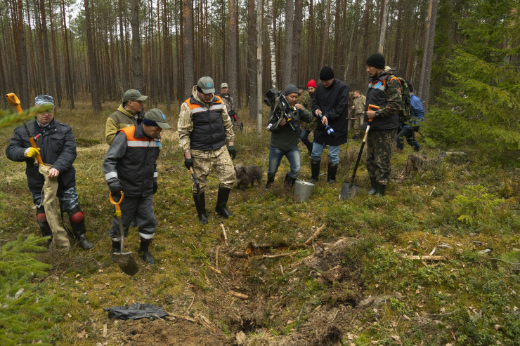 А тем временем в лесах продолжаются поиски. Примечательно, что среди тех, кто ищет останки бойцов, люди достаточно зрелого возраста.