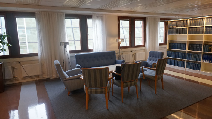 Здесь библиотека со множеством книг и зона отдыха для работников суда.