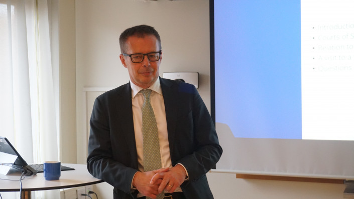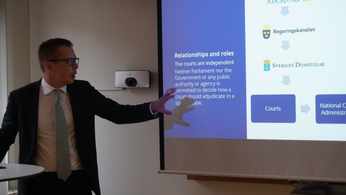 А вот и председатель суда Сольна Патрик Альм, который рассказал казахстанской делегации о работе шведских судов и их взаимодействии с прессой.