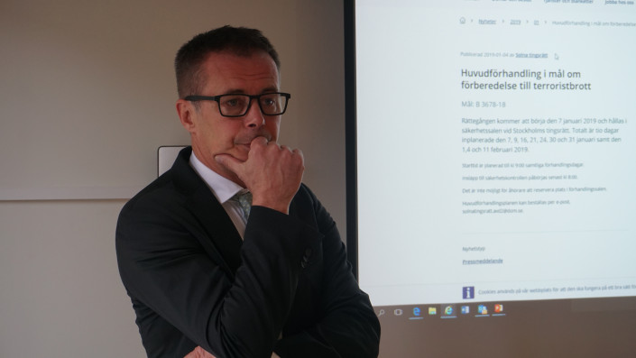 Патрик Альм работает в качестве судьи, но параллельно занимается здесь административной работой. Общий стаж в судебной системе - 20 лет. Последние 12 лет рассматривает уголовные дела и различные споры. В этом суде у него больше дел по мигрантам и беженцам. Также он входит в группу шведских юристов, которые взаимодействуют с прессой.