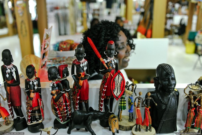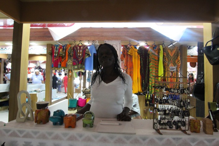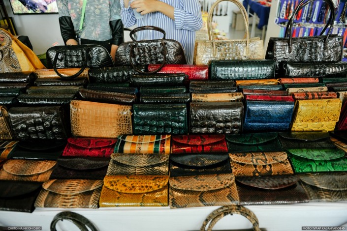 Впрочем, есть в африканских павильонах такие, так сказать, экспонаты, которые трогать разрешают. Например, изделия из кожи верблюда, змеи и крокодила, которыми торгуют на ярмарке.
