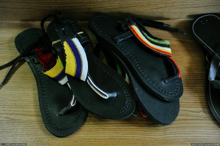 "Эти шлепанцы хорошо разбирают. Прочные. 5 000 тенге", - говорит продавец возле соседнего прилавка.