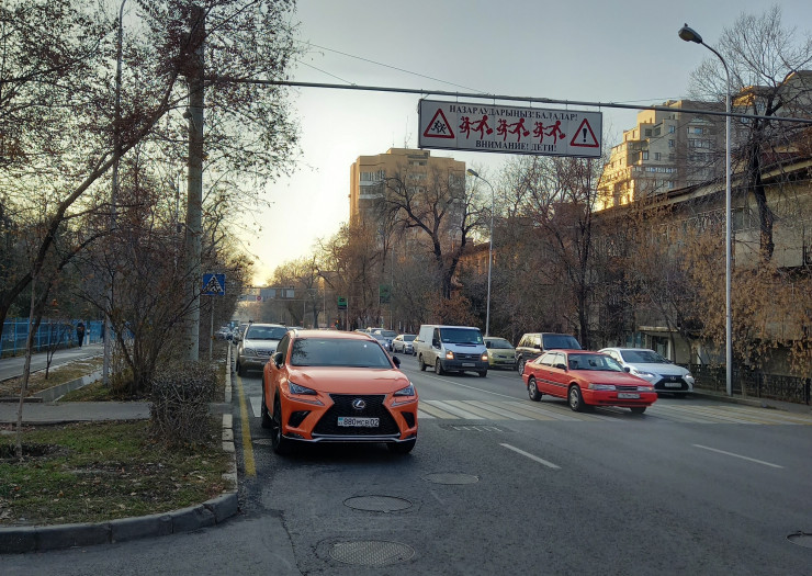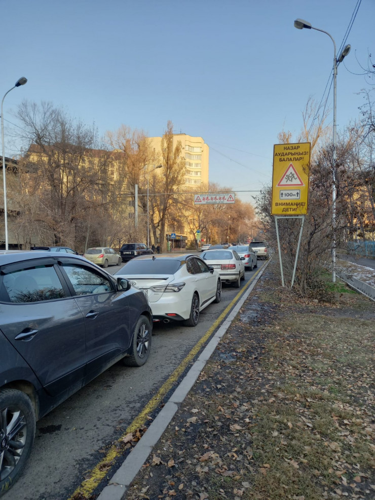 "Парковки возле школ - еще одна проблема, например, № 120 (по Курмангазы). В часы пик там стоят машины, занимают ряд.