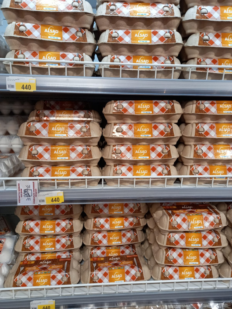 • куриных яиц первой категории марки "Алсад" по цене 420-440 тенге за десяток.