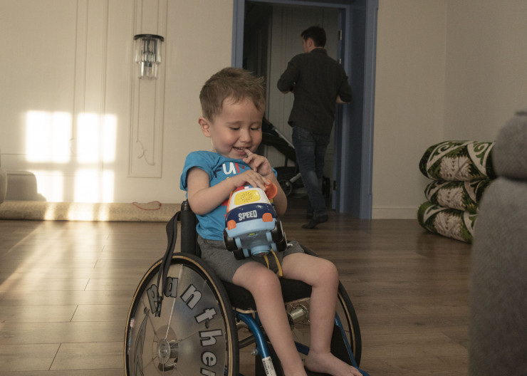 Например, раньше он не мог сидеть на попе и опираться на руки, сейчас для него это не проблема. Раньше он не мог, стоя на коленях, держать туловище, сейчас он с этим справляется. То есть постепенно прогресс идет, и это при том, что мы еще не начали сам процесс реабилитации, сейчас идет период адаптации. В настоящее время мы принимаем гормональные препараты, которые снижают некоторые побочные действия "Золгенсмы", потому что препарат сильный и дает нагрузку на организм", - рассказывает Талех.