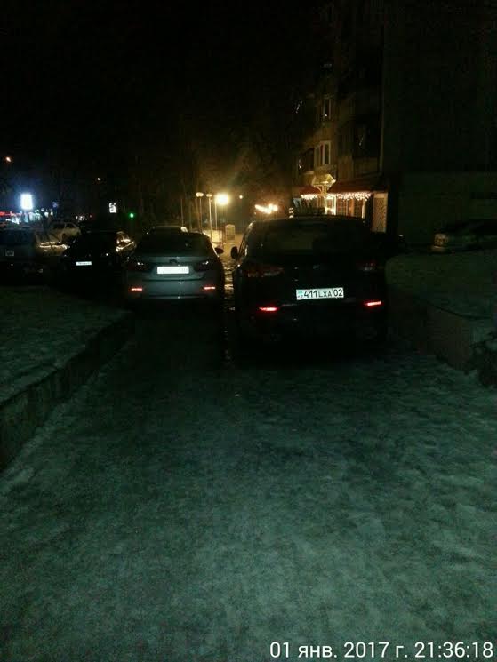 Аналогичный случай. Жители многоэтажного дома жалуются на посетителей одного из ресторанов, которые паркуют свои автомобили прямо на тротуаре в районе проспекта Аль-Фараби и улицы Навои.