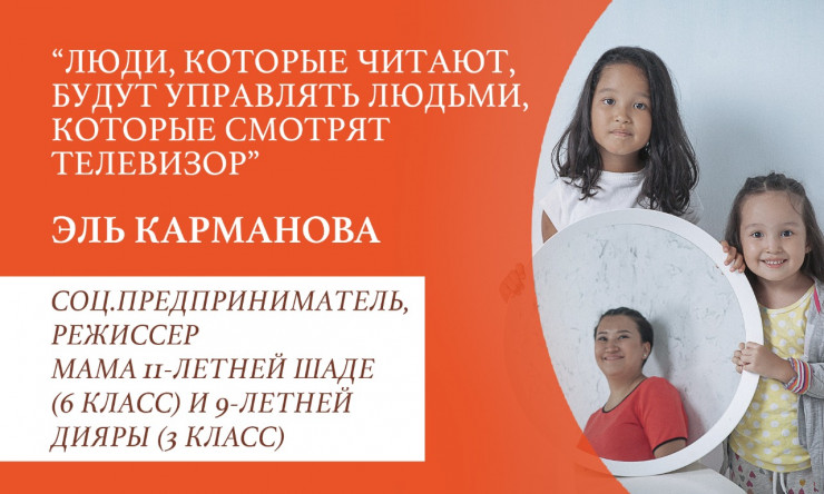 "Старшей дочери Шаде я начала читать уже в 11 месяцев, это была подборка стихов казахстанского автора. Уже через месяц она повторяла последнее слово. А уже через пару месяцев – всю строчку. Младшая дочь Дияра у нас самодостаточная, не делала то, что не хотела: говорить она начала только в 3 года. Моя страсть к чтению сформировалась в детстве, когда я сама еще читать не умела – ходила за папой и дядей, просила их почитать, и волшебный мир оживал. Пожалуй, именно это волшебство я и хотела подарить дочкам.
