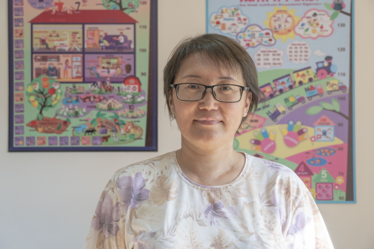 На цокольном этаже одной из типовых пятиэтажек расположен образовательный центр. Руководит им Улжан Мырзагелдиева - в прошлом учитель казахского языка, а ныне социальный предприниматель и учредитель фонда "Сильных мам". Улжан в одиночку воспитывает четверых детей. На вопрос, как же так получилось, она спокойно отвечает: такова судьба.