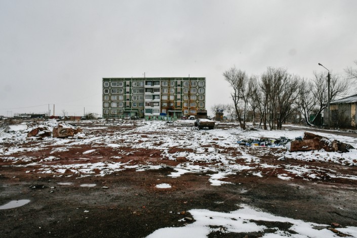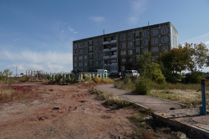 Прочитав, что дом № 6 (зеленую пятиэтажку) сносят, жильцы соседней одноэтажки под номером 7 поинтересовались у акима, а что же будет с их домом, который, по сути, остается один в степи.