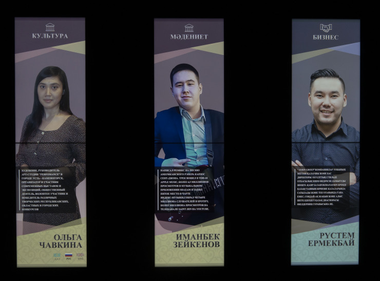 Не сразу понятно, что делает фотография этого удачливого парня в здании, которое соединяется тоннелем с офисом Нурсултана Назарбаева. Оказалось, что портрет Иманбека вместе с портретами других отличившихся казахстанцев представляют экспозицию, посвященную проекту "100 новых лиц".
