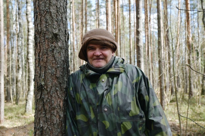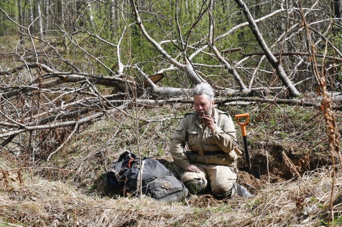 Гуляя по лесу, мы с фотографом заметили примечательную картину - поисковик раскуривает трубку. Не сфотографировать такой образ было просто невозможно. Хотели сделать это тайно, но нас быстро разоблачили. "Прежде чем фотографировать, нужно спрашивать разрешения, молодые люди", - сказал герой фотографии.
