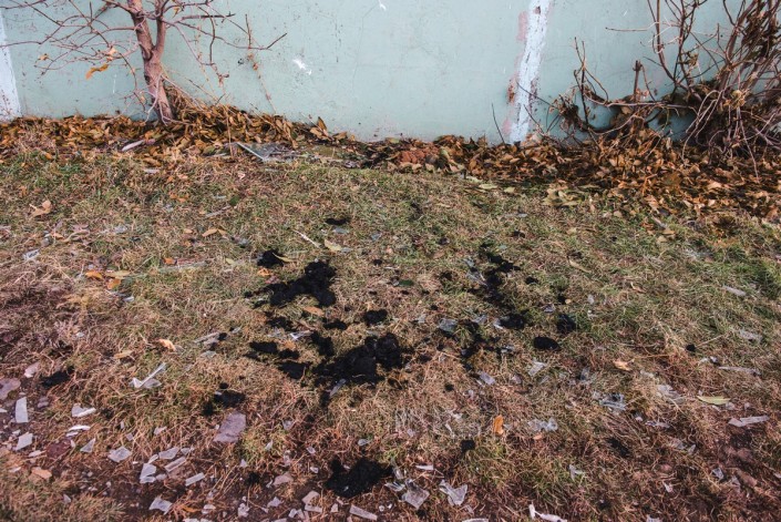 Обгоревшие остатки матраса на земле лежат до сих пор. На фото снизу - то же место в день ЧП.