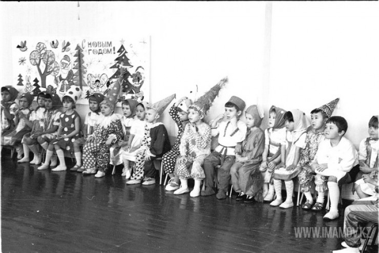 Репортаж из детского сада № 45 "Тюльпан", 1970 год. Дети водят хоровод, на фоне висит портрет Ленина. Героям снимка сейчас больше 50 лет.