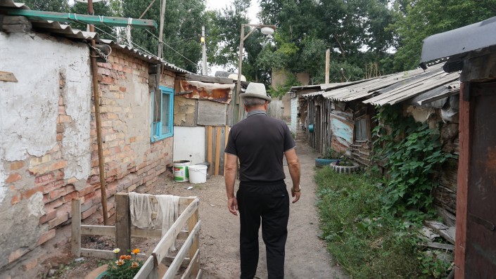 "Живет, например, одна семья из Кызылорды, работы там нет, они сюда приехали. Вот где трубы в сарае - там везде люди живут. У нас столько квартир в городе пустых, некоторые скупают целыми подъездами, неужели нельзя этим семьям квартиру дать, они же работают", - рассуждает мужчина.