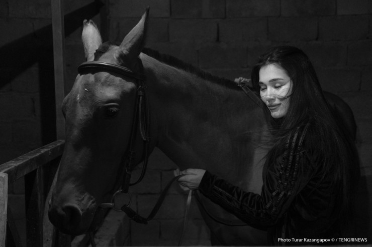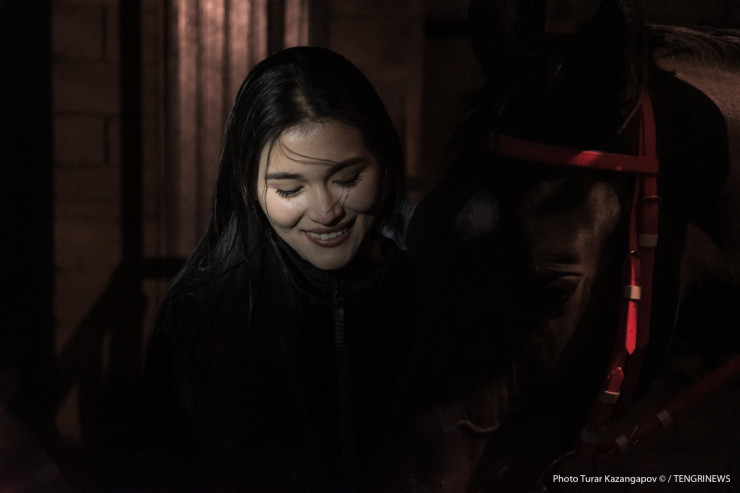 Зовут ее Балнур, фамилия Садык, ей 23 года. На первый взгляд это хрупкая девушка, но стоит ей сесть на лошадь, как она тут же превращается в грациозную и даже местами бесстрашную всадницу.