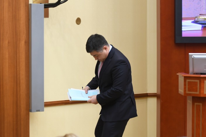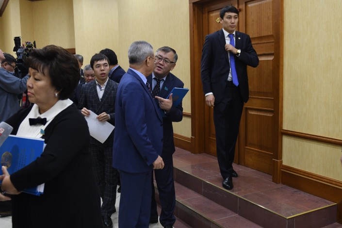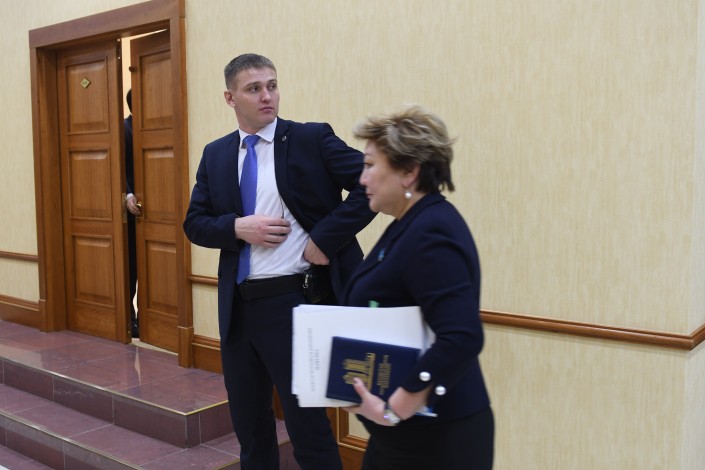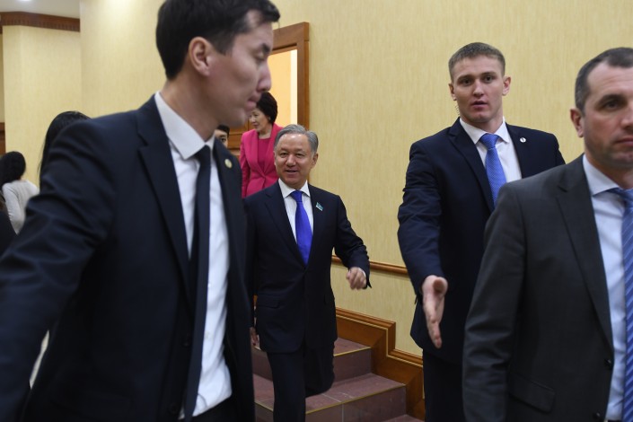 Тем временем заседание Мажилиса еще даже не думало заканчиваться. Но в какой-то момент охранники Нигматулина приняли выжидательную позицию. Очевидно, им поступил сигнал, что сейчас должен выйти их шеф. Нурлан Нигматулин действительно покинул заседание, оставив ведение пленарки вице-спикеру.