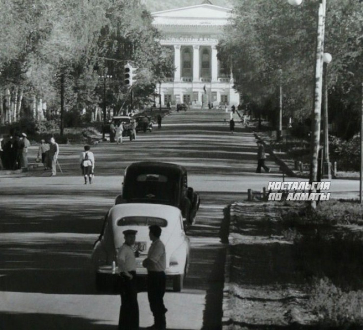 Ниже Академия наук Казахской ССР, снимок 1972 года. Сейчас это Национальная академия наук РК.