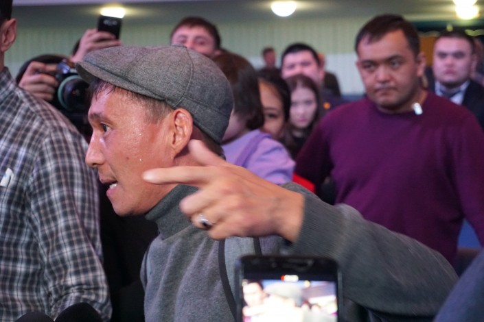 Тогда в концертном зале "Астана" проходила встреча многодетных матерей Астаны с акимом города. Рысмахан был одним из немногих мужчин (в основном там были женщины), кто пытался попасть на прием к столичному градоначальнику.