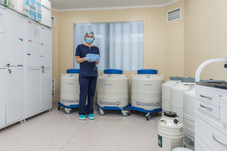 "Биоматериал замораживают в жидком азоте при температуре минус 196 градусов, в специальном сосуде Дьюара, который маркируется, у каждого сосуда свой номер, все это заносится в базу, и перепутать что-то просто невозможно. Прописано, что он, биоматериал, может храниться до 25 лет, хотя на самом деле гораздо больше".