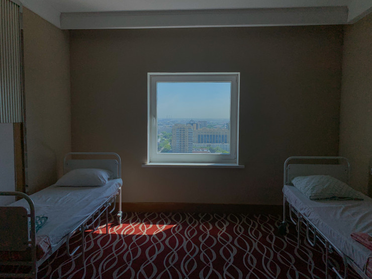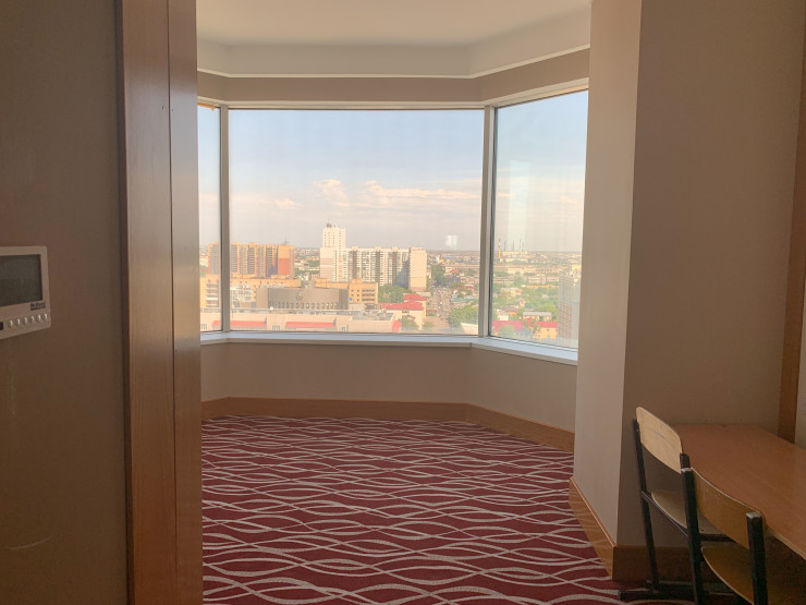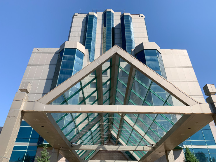 В старой части столицы Казахстана есть очень знаковый объект. Когда-то самое высокое здание в городе. Речь идет об отеле "Рамада", который изначально назывался "Интерконтиненталь". В настоящее время он не функционирует как гостиница, здесь временно размещается ковидный стационар. Наш корреспондент побывал внутри здания в период, когда оно находилось в резерве, то есть там, кроме охранника, никого не было.