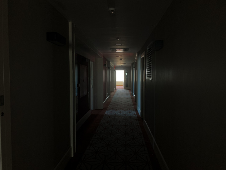Причем внутри сохранен весь узнаваемый антураж, например, выемка в стене со стаканами и подсветкой или светящийся номер при входе.