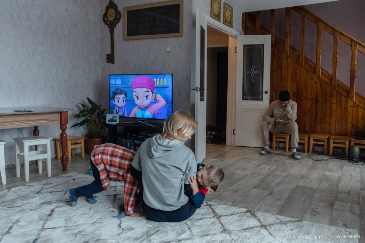 "Когда они были маленькие, смотрели мультфильмы и фильмы на казахском языке. Иногда даже я обращаюсь к ним на русском, они отвечают на казахском", - говорит Мурат.