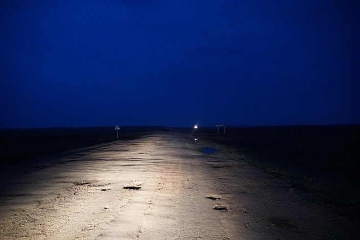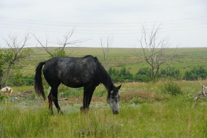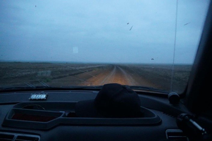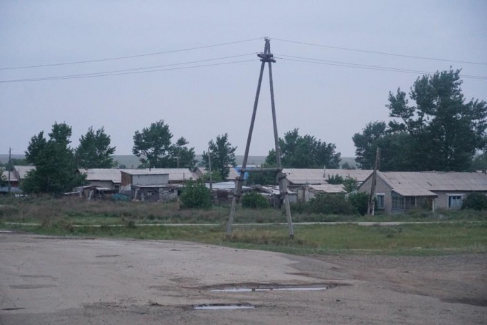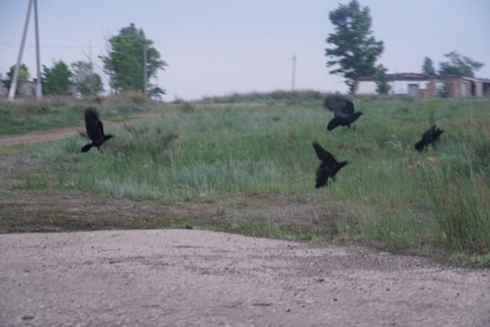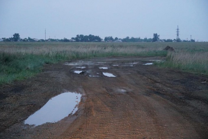 Расстояние от города Есиль до Калачей и Красногорского - всего 40 километров, но дорога в ужасном состоянии. Поэтому мы добираемся до места назначения около часа, а может, даже больше. Устав объезжать бесконечные кочки и ямы, сворачиваем и едем просто по полю. К нам под колеса то и дело бросаются лисы и зайцы.