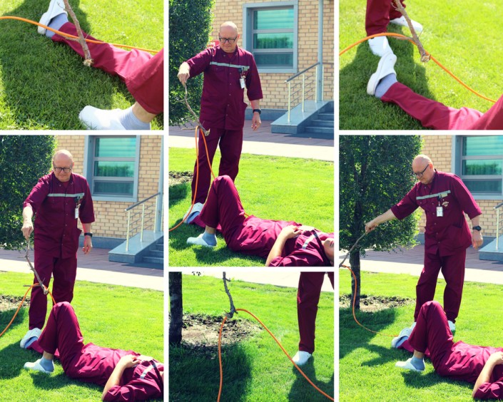 Мы убедились в безопасности, добрались до пострадавшего, убрали все поражающие провода и кабели – теперь можно приступать к оказанию первой немедицинской помощи.