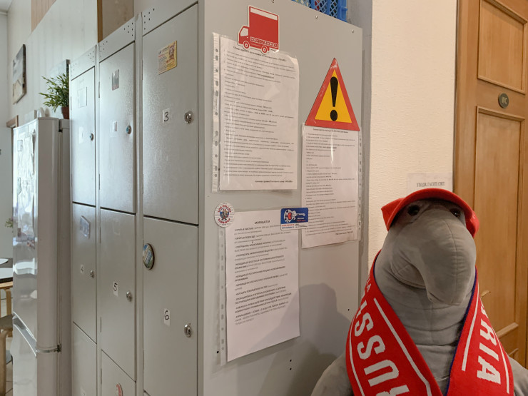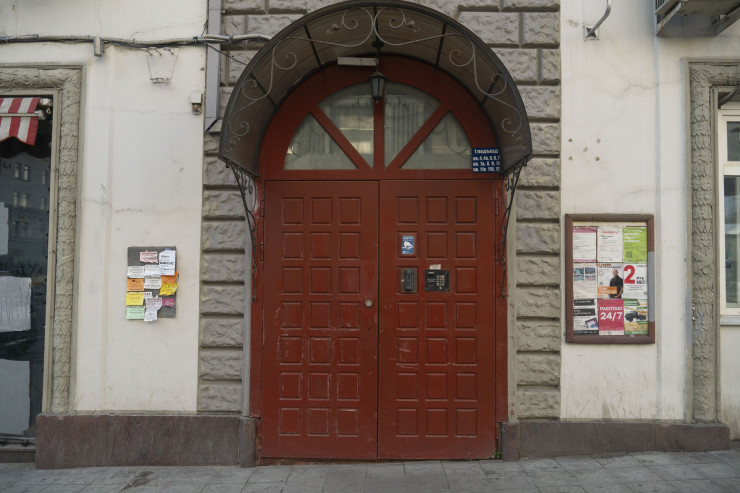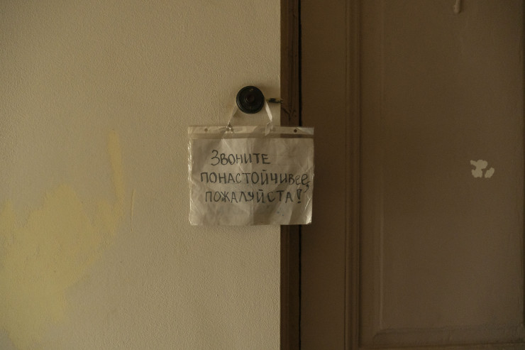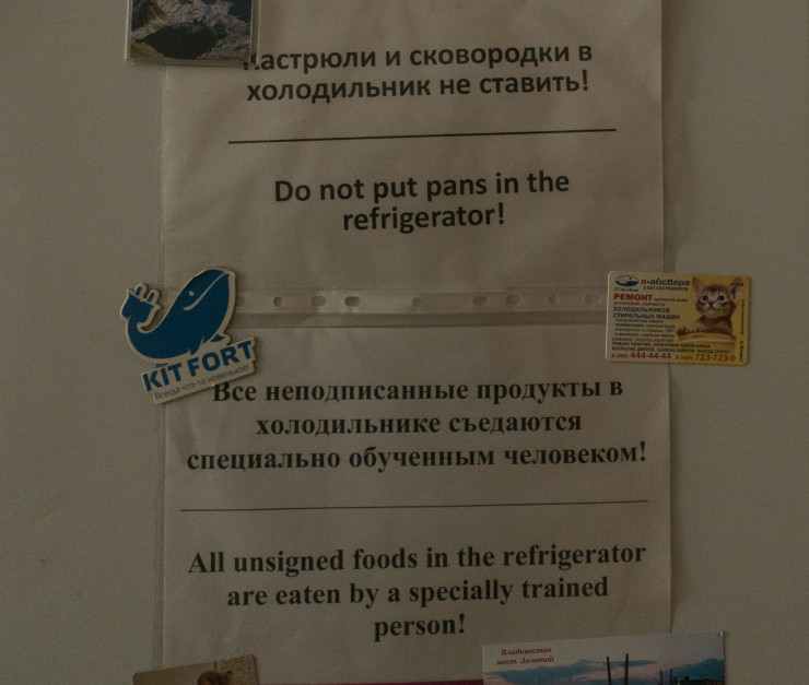 О том, что в Москве не стоит проявлять чрезмерную мягкость и скромность, можно судить по объявлению при входе в соседнюю с хостелом квартиру, в нем говорится: "Звоните понастойчивее, пожалуйста!"