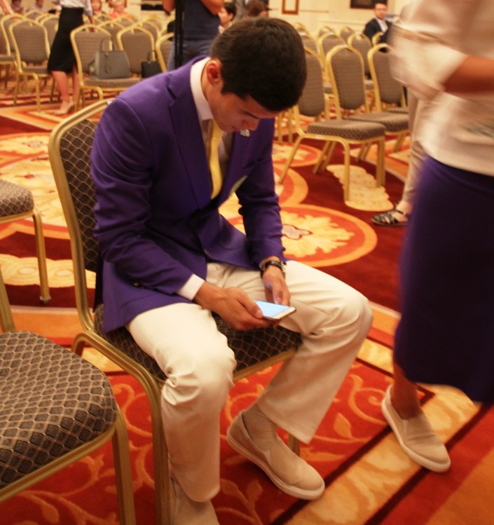 Сегодняшняя встреча была хоть и с участием главы НОК и министра культуры и спорта, но все же это было не такое масштабное мероприятие, как ожидает спортсменов завтра. Между тем герои Олимпиады старались выглядеть безупречно. Когда уже все приглашенные были на месте, и Тимур Кулибаев ждал только министра, чтобы начать, появился серебряный призер Олимпиады Елдос Сметов и девушка, по всей видимости, отвечающая за организацию встречи досадно произнесла: "Это же не та форма".