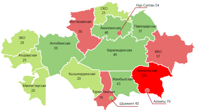 Из 799 фактов изнасилования 129 случаев зарегистрировано в Алматинской области, 79 - в Алматы. Это самый высокий показатель по стране. Также с начала года в Нур-Султане зафиксировано 54 случая, в Шымкенте - 40.