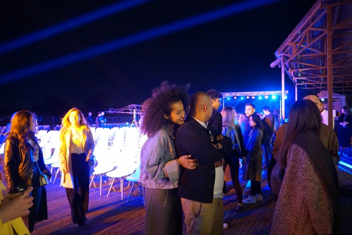 Все это веселье проходит на крыше некогда промышленного объекта.