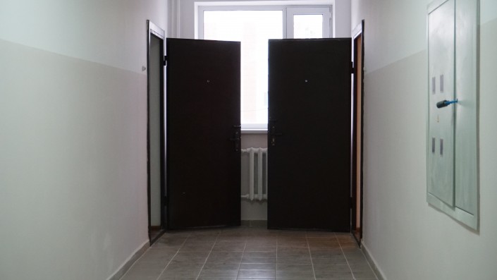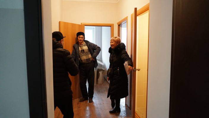Местный активист Жандарбек, или, как его все называют, Жора, не спешит проявлять радость. Он очень внимательно проверяет выданные его семье две квартиры. К жилым помещениям у него есть претензии.