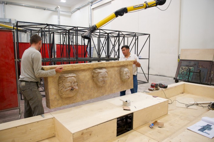 В этой великолепной опере, состоящей из четырех актов, смена декораций достигает рекордного числа, и все они очень быстрые. Руководитель художественно-постановочного комплекса Виктор Караре рассказывает, что в третьем акте действие начинается в горах, зрители увидят 12-метровые (!) элементы декораций, и за несколько минут 50 машинистов сцены должны сменить массивные конструкции, представляющие собой горную местность, на центральную городскую площадь.