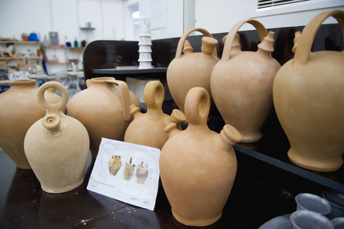 "Необычной формы посуда, кувшины, вазы удивили нас сразу, как только мы увидели эскизы. Изготовлялись они по технологии папье-маше, но вначале отливались формы, вытягивались глиной, затем заливались гипсом, а уже потом лепилось папье-маше, - рассказывает художник-бутафор, скульптор Даурен Омаров. - Бутафорские ружья по технологии изготовления идентичны настоящим: дерево, металл и чеканка, а если добавить специальный механизм, то они смогут даже стрелять. Светильники выполнены из дерева, но так задекорированы, что выглядят, как будто сделаны из старой латуни, с проступившей на железных вставках ржавчиной".