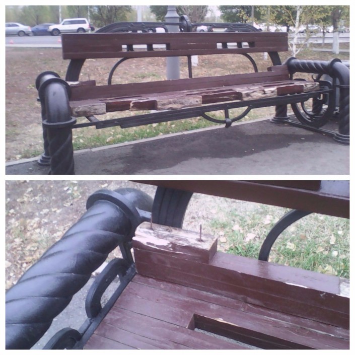 Не остались без внимания и проблемы столицы Казахстана. Как отмечается в сообщении читателя, по пешеходной аллее рядом с торгово-развлекательным центром "Хан-Шатыр" стоит опасная скамейка. Неравнодушный астанчанин беспокоится, что из-за торчащих из скамейки гвоздей жители и гости столицы могут получить травму.