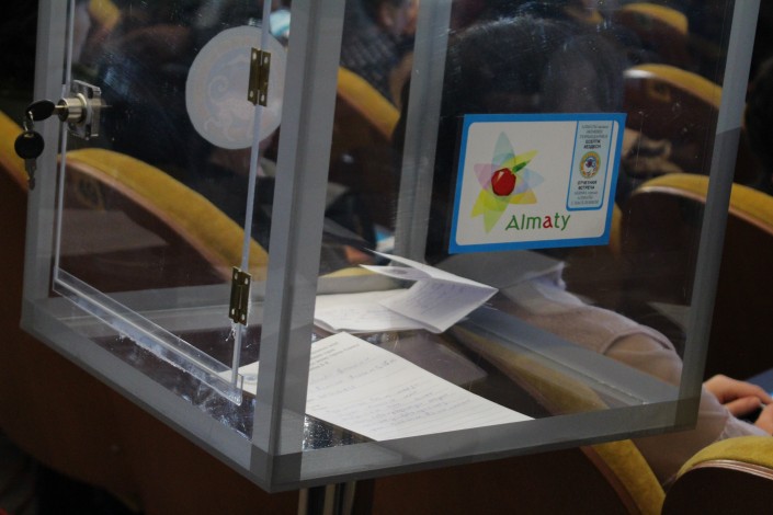 Затем посыпались вопросы, причем самые разные, как личного, так и более масштабного характера. Почти на все вопросы аким старался развернуто отвечать, словно заранее знал, что будут спрашивать. Правда, задать их успели далеко не все, оставшуюся часть алматинцам предложили адресовать на личном приеме уже после основного мероприятия либо написать письменно и положить в специальный бокс.